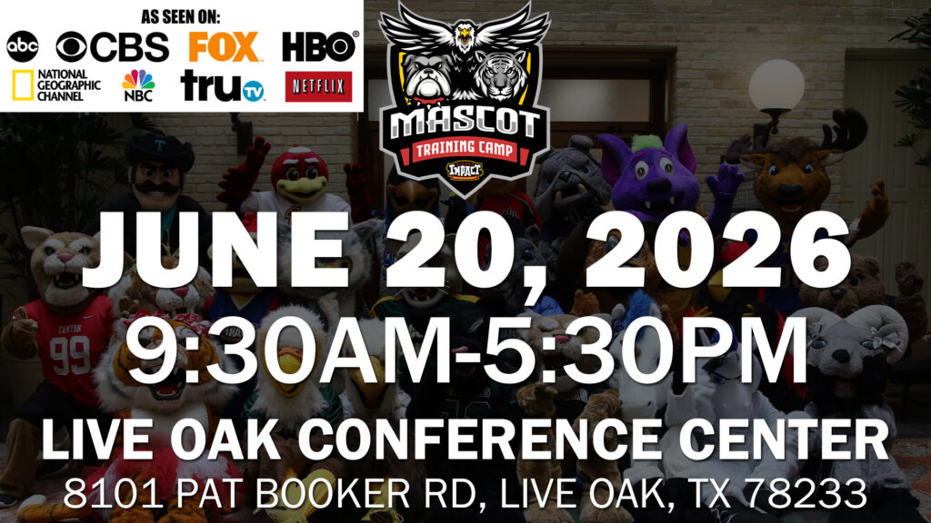 Attention all middle school, high school, college, professional, and aspiring mascots! Are you looking for a way to bring your mascot character to life and take your performance to the next level? Your lead Mascot Training Camp Instructor, Jerome Bartlett, is a former New Braunfels High School mascot, Texas State University National Champion mascot, Official NCAA mascot, San Antonio Missions mascot, San Antonio Rampage, San Antonio Spurs mascot, and Round Rock Express mascot. Higher Impact Entertainment’s MASCOT TRAINING CAMP is the perfect opportunity to learn the basics in mascot performer training.